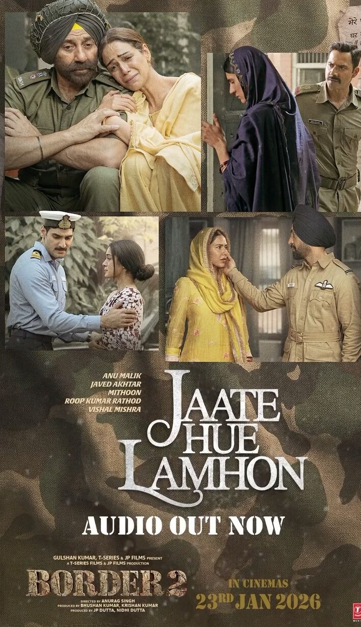 ‘जाते हुए लम्हों’ फिल्म ‘बॉर्डर 2’ का तीसरा गाना है। इससे पहले फिल्म से पहला गाना ‘घर कब आओगे’ रिलीज हुआ था, जिसे दर्शकों ने खूब पसंद किया। इसके बाद दूसरा रोमांटिक ट्रैक ‘इश्क दा चेहरा’ सामने आया। अब तीसरे गाने के साथ फिल्म को लेकर दर्शकों की उत्सुकता और भी बढ़ गई है।